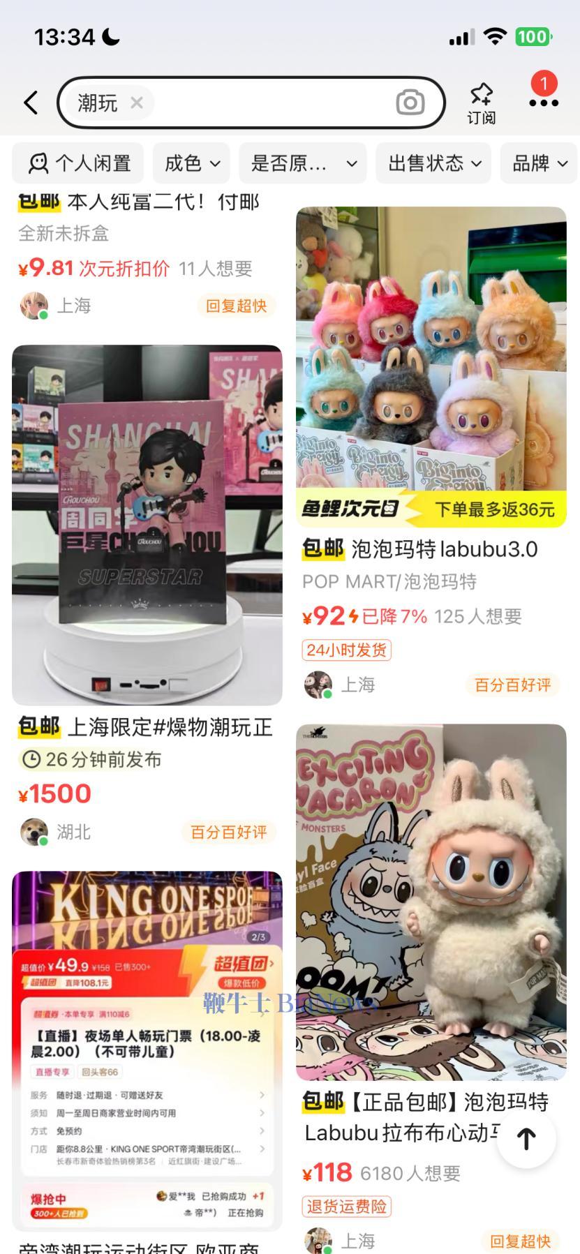 而需求侧,人均单次消费约218元,表明用户愿意为兴趣付费。这一切共同构成了一个非标、内容、变现、再流转的密集生态,闲鱼交易的早已不只是物品,更是IP价值、同好情感与圈层文化。