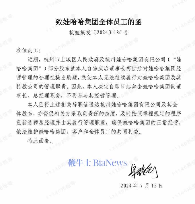 2024年7月18日,另据第一财经日报,有娃哈哈前高管称此事属实。(转载自极目新闻)