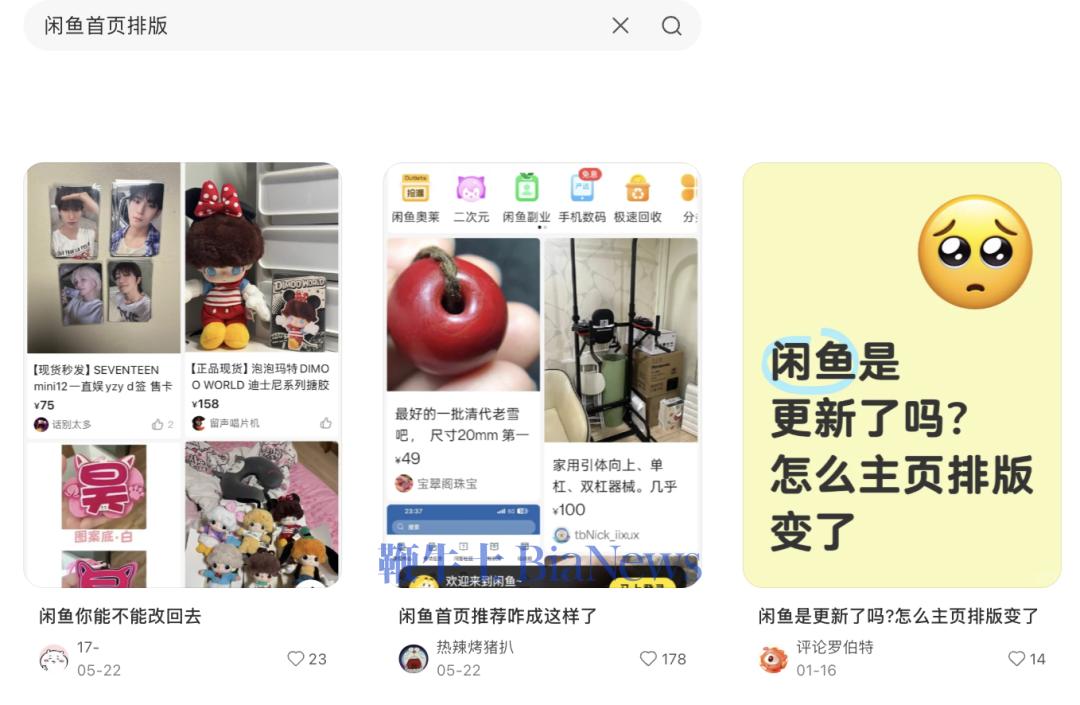 从闲鱼的生意出发,它和小红书相像看起来奇怪,但其实合情合理——C2C生意难做。闲鱼最大的竞争对手就选择了直接退出。转转于2025年9月22日发布公开信,宣布将全面转向C2B2C模式的“官方验”业务,退出C2C模式的“自由市场”业务。聚焦C2C模式,无论是新兴起的副业技能买卖,还是二手物品租赁买卖、优惠券倒卖,追溯源头都是个人。在供给侧,商家和商品的增长方式与传统电商依靠供应链的模式截然不同,用户是否愿意将自有技能、自用物品放在闲鱼,又是否愿意在闲鱼购买二手物品或技能服务,是平台需要持续解决的问题。C2C交易即便成功,也难以控制退货率和履约体验。长期以来,二次元商品退货率只有普通商品的一半,闲鱼将其归因于社区营造的信任,同好人群之间的互动有利于增进交易。这也是闲鱼的板块变得丰富的主要原因,目的是使得闲鱼走向社区,建立起基于同好或基于附近的交流。闲鱼的众多功能里,兴趣小组和排版变化是最被用户质疑最多的,在社交媒体上也不乏吐槽的声音。但又不得不承认,在鱼龙混杂的商业交易中,共同的兴趣爱好所构成的社区文化,是保持基本信任和环节流畅的一种手段,还能一举多得——从本地生活和内容营销的市场里分一杯羹。