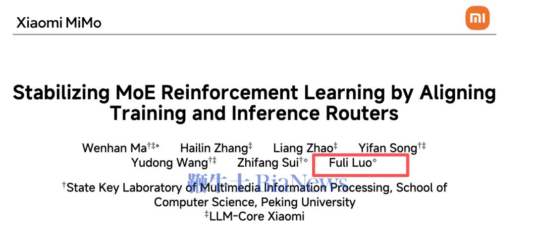10月14日,小米和北京大学联合署名的论文发表于arXiv,曾被曝获小米集团创始人兼CEO雷军以千万年薪招募的DeepSeek“天才少女”罗福莉,出现在了这篇论文的通讯作者之列,但值得注意的是,论文作者中并没有标注罗福莉属于小米大模型团队。