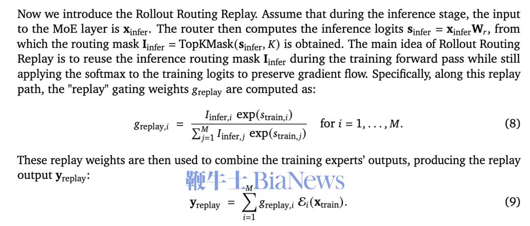 强化学习已成为大语言模型后期训练的基石,利用大规模强化学习,大模型更深入、更广泛推理,获得解决复杂问题所需的高级能力,但其面临的关键挑战是如何平衡效率和稳定性。 现代强化学习框架通常使用不同的引擎进行推理和训练用于部署,但这种架构上的分离可能导致token概率出现分歧,甚至可能导致灾难性的强化学习崩溃。然而,现有的改进方法并不能完全解决MoE模型上进行强化学习训练时出现的强化学习离线策略问题。 研究人员提出的R3,其工作原理是在序列生成期间从推理引擎捕获路由分布,并将其直接重放到训练引擎中。这一过程可以缩小训练和推理之间的差距,其显著特征是不同引擎生成的逻辑向量的KL散度(量化两个概率分布之间的差异程度,值越小说明两个分布越接近)显著降低,两个阶段之间概率差异显著的token数量减少了大约一个数量级。 此外,该方法同时适用于在线策略(on-policy)和小批量(mini-batch)式离线策略强化学习(off-policy)场景。 论文提到了研究团队的三大主要贡献: 1、系统识别和分析了MoE模型中训练和推理之间的路由分布差异,强调了它们在训练不稳定性中的作用; 2、提出Rollout Routing Replay,它重用训练引擎内部的推理时间路由分布,以协调训练和推理之间的路由行为; 3、将R3应用于多种强化学习设置进行MoE强化学习,并表明R3在稳定性和整体性能方面优于GSPO和TIS。