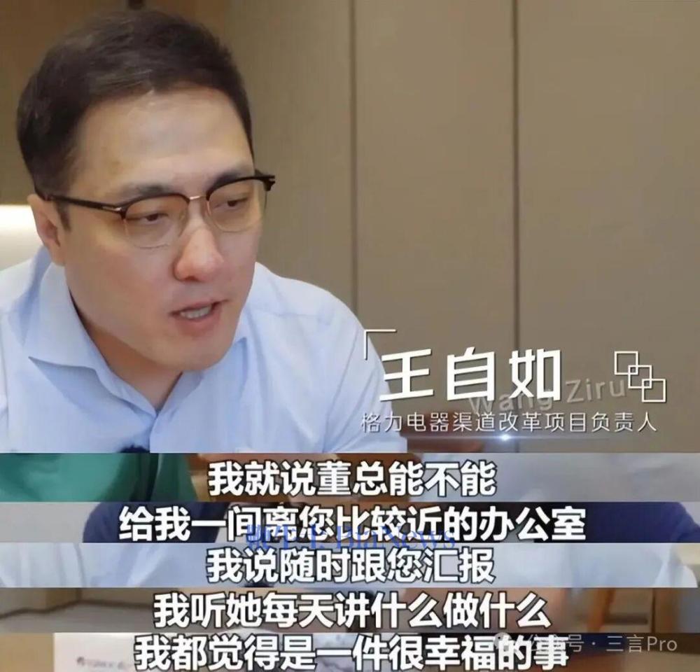 第二个是在一次采访中,王自如说从来没有看过格力发给自己的工资条,还说只想在格力拥有一间离董明珠很近的办公室。