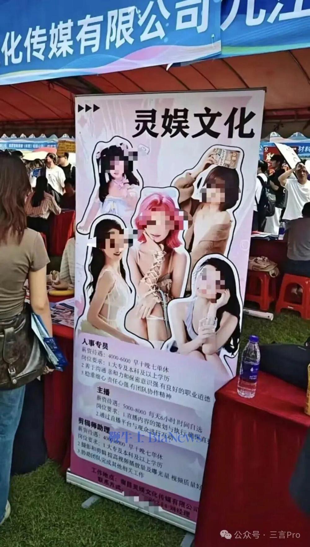 近日,在南昌大学秋招现场,一家公司招聘主播的宣传海报,被指“过于露骨”引发争议。