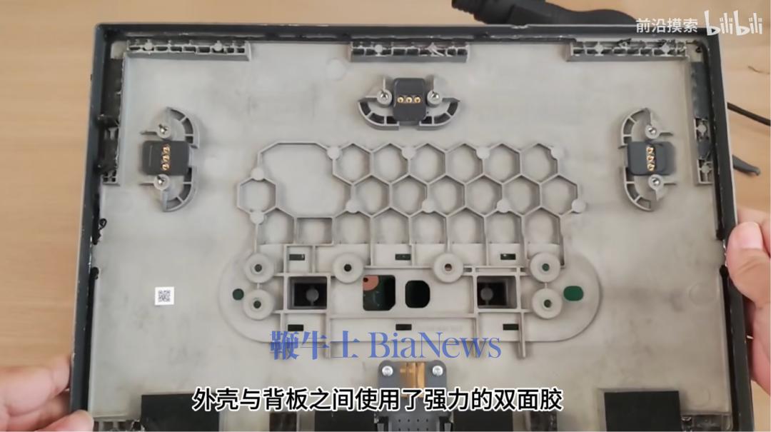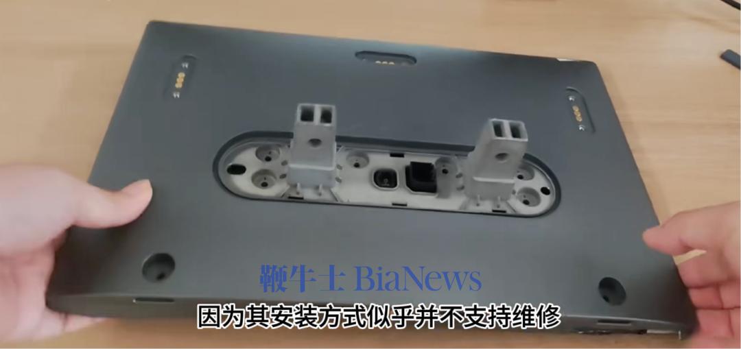 小米SU7的中控屏设计整理用料非常奢侈,在国产车中罕见。例如采用金属后盖直接作为电磁屏蔽,在当前车企普遍Cost Down的背景下较为少见。