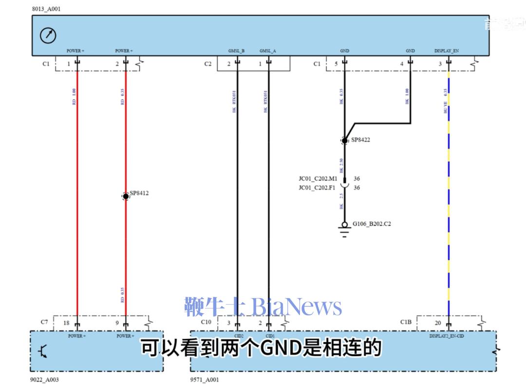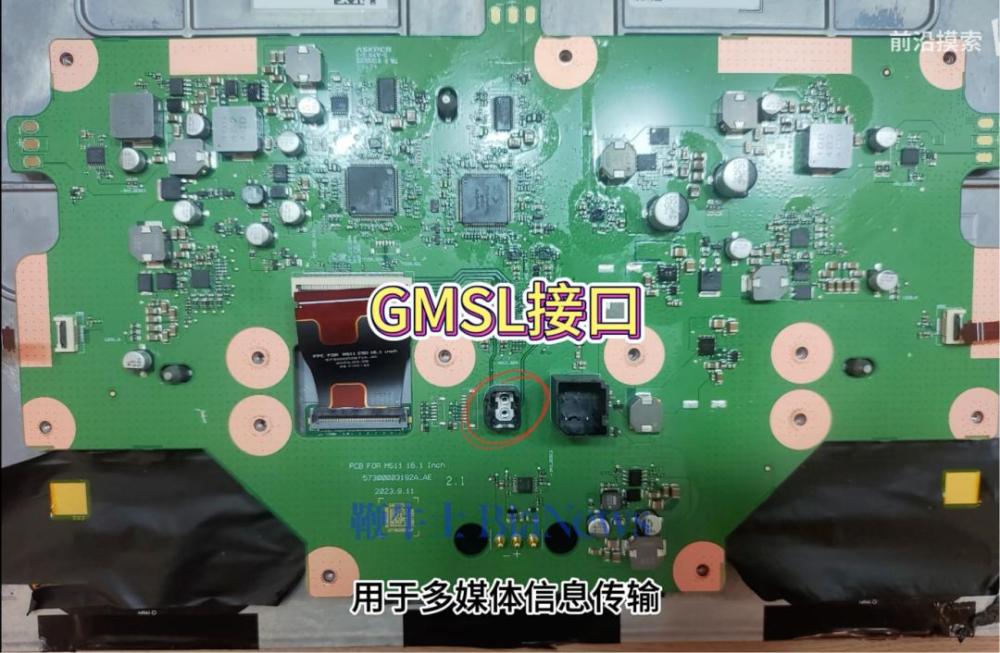 中控屏采用双路GMSL接口,未使用STP线束,而是双路COAX,推测后续搭载小尺寸屏的车型或可仅接一路GMSL。