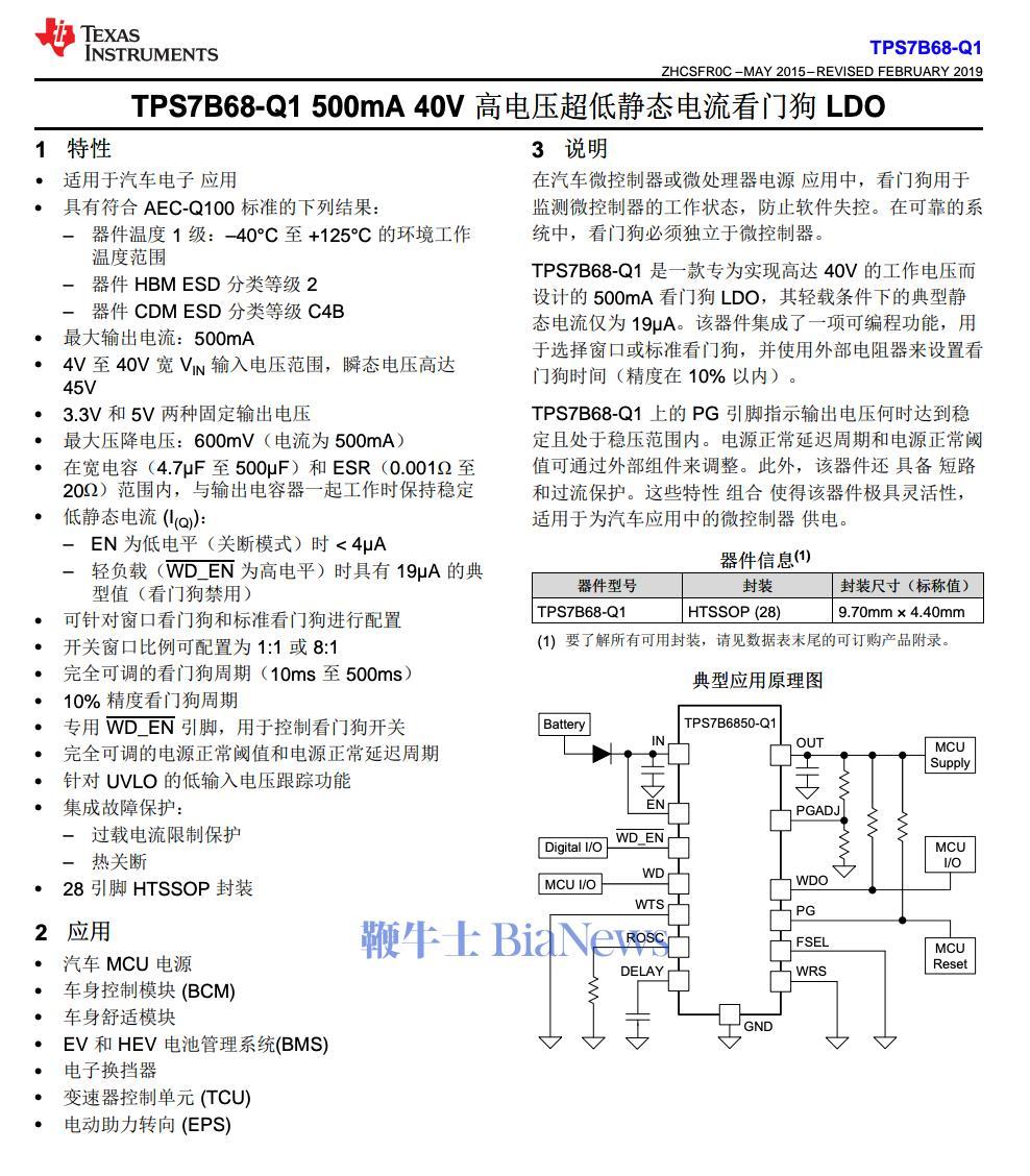 TPS7B6833QPWPRQ1:德州仪器的一款具有看门狗计时器的汽车类 500mA、电池供电运行 (40V)、高 PSRR、低 IQ、低压降稳压器。它主要用于为中控屏幕的部分电路提供稳定的电压输出,确保电路在各种工况下都能稳定工作,看门狗功能可在系统出现异常时进行复位,提高系统的可靠性。