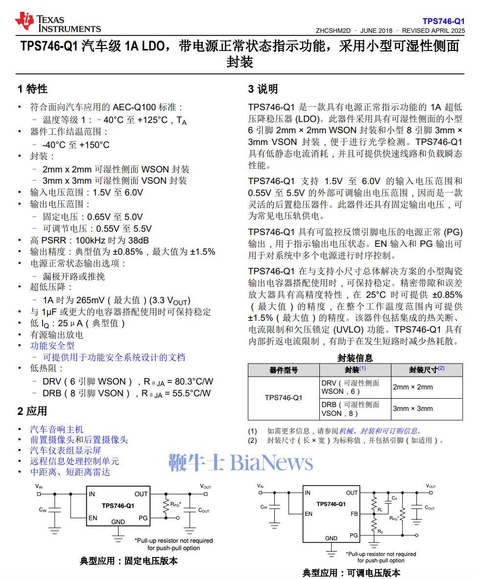 TPS74601PQWDRBRQ1:德州仪器的一款具有电源正常指示功能的汽车类、1A、低 IQ、高 PSRR、低压降 (LDO) 稳压器。主要用于为中控屏幕的特定电路提供稳定的低压输出,具有低静态电流、快速瞬态响应等特点,可确保在汽车电源电压波动时,相关电路仍能获得稳定的供电,保证中控屏幕的正常运行。