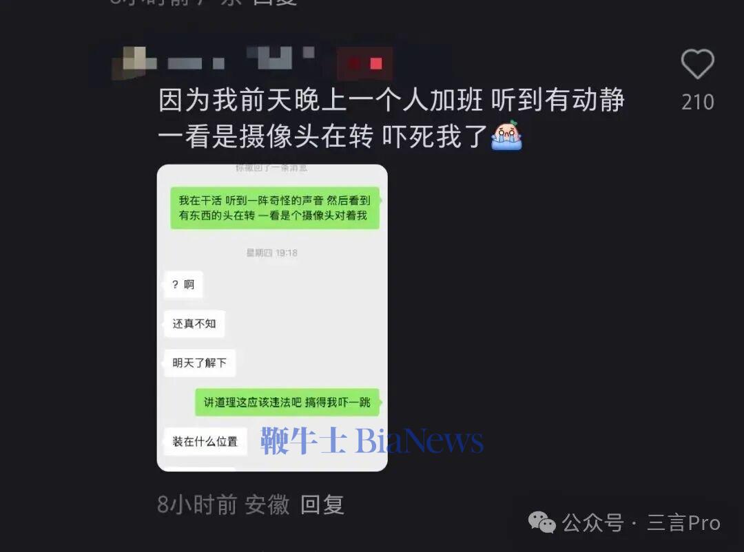 也有网友透露自己公司领导也在办公室隔间私自装了摄像头,经常偷听偷看;