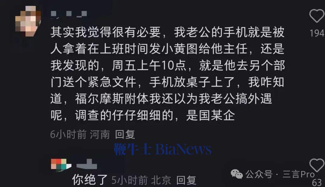 一名网友认为其实有必要装监控,她表示自己老公手机就是被人拿着上班时间发小黄图给公司主任,如果不是自己“福尔摩斯附体”,此事都难以察觉;