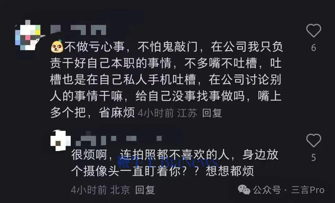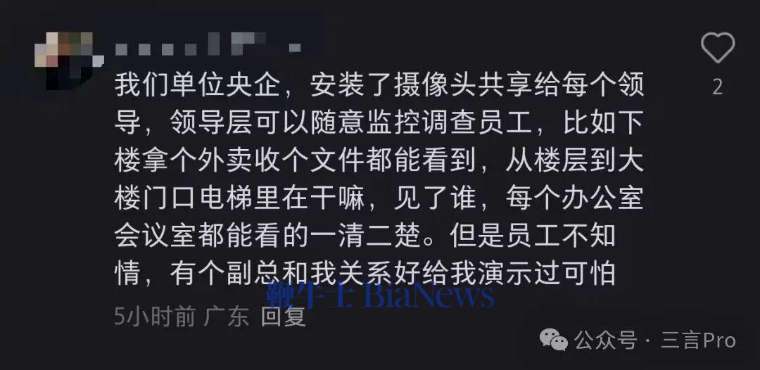 一名网友表示,自己和同事经常吐槽领导,要是被摄像头录进去可不得了;
