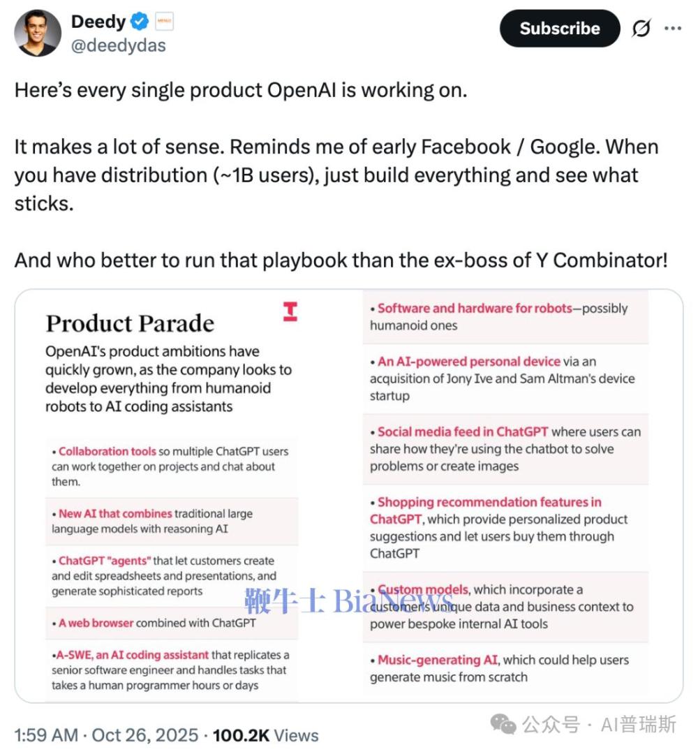 10月26日消息,有人在社交媒体曝光OpenAI内部路线图,这也是OpenAI的产品版图首次被系统性地展示出来。