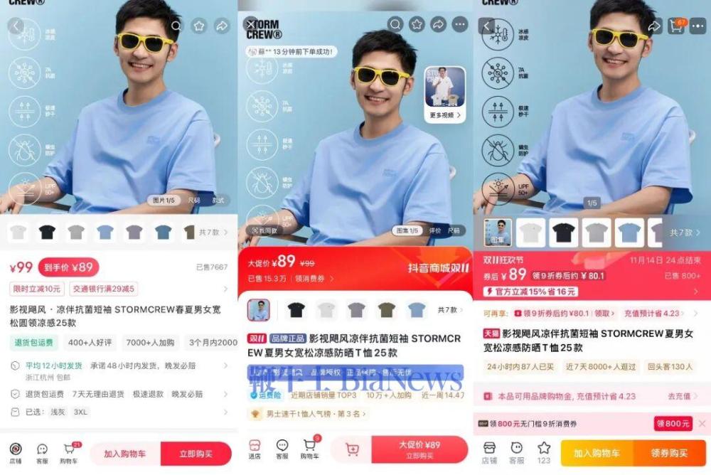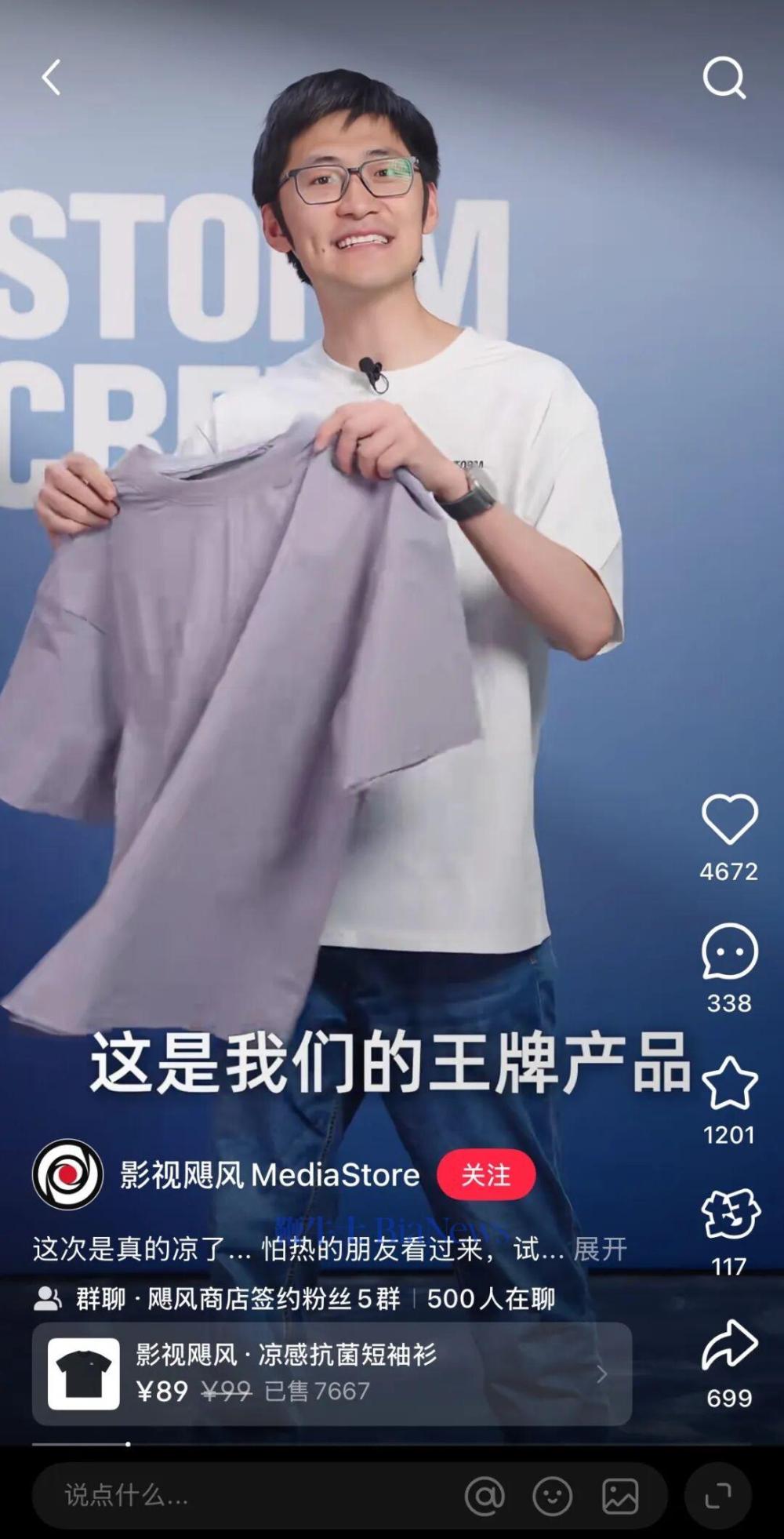 追溯“凉伴”T恤的爆款路径,可以发现叠加了内容、信任、产品力、渠道等多个优势。今年4月,影视飓风推出了集凉感、抗菌、速干、防螨、防晒五大卖点的T恤,售价89元。此后这款产品出现在官方直播间、官方短视频切片等多个线上销售渠道。
