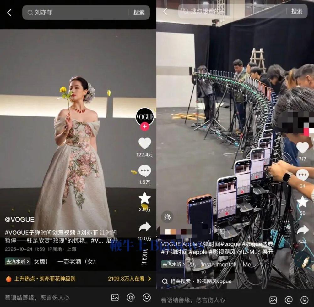 前阵子话题度爆棚的vouge盛典的“子弹时间”创意视频就由影视飓风拍摄,这些视频目前均在vouge官方账号,仅刘亦菲的单支视频点赞就超过100万。在老粉们的热情科普下,影视飓风也被成功安利给了各家艺人粉丝。