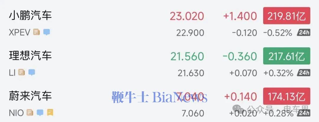 小鹏市值超过理想2亿美元,蔚来也正在逼近小鹏和理想。