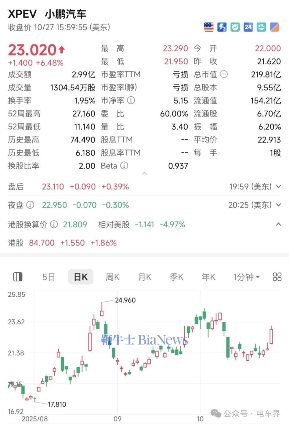 电车界查询后发现,理想市值被小鹏超越,还是小鹏上市那天。