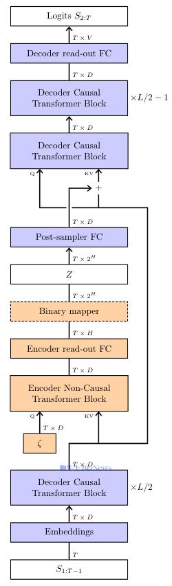 Free Transformer的结构设计非常巧妙。它不是一个全新的模型,而是对标准解码器Transformer的微小改造。