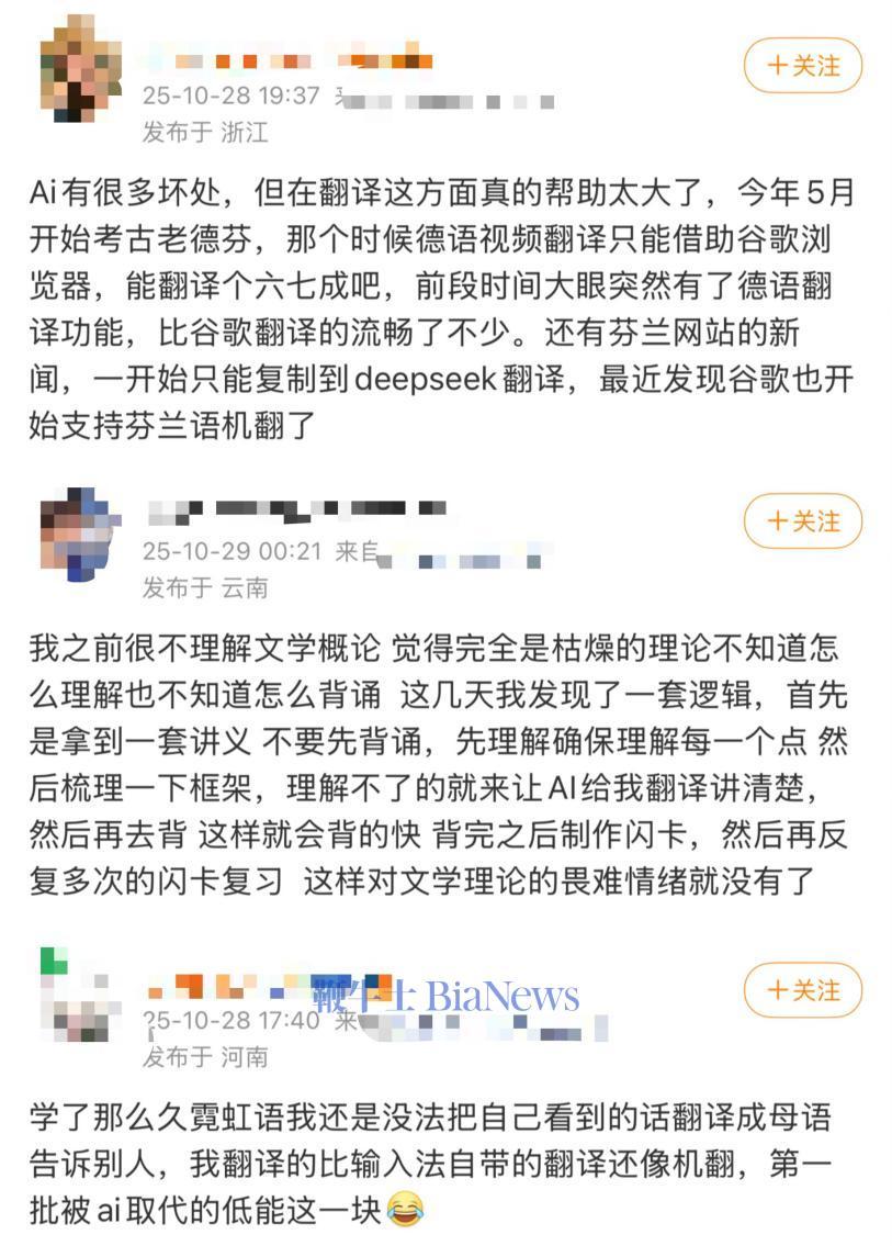 撰文/ 孟会缘 编辑/ 陈邓新 排版/ Annalee 在会被AI轻易取代的行业中,翻译长期被列为高风险领域之一。 眼下,这一观点不再是人们对于未来的臆测,而是有数据和案例印证的事实:“翻译界哈佛”蒙特雷明德国际研究学院宣布关停,带来的震动犹如一颗重磅炸弹在翻译界炸开,这所久负盛名的学院走向衰败与AI浪潮的冲击密切相关;网易有道词典“AI同传”用户量突破2000万,引发外界对AI翻译商业化落地的广泛关注,原来AI的悄然下场已经将翻译的价格卷成了“白菜价”…… 现实是,如今的AI翻译工具,不仅能够实现多语种之间的快速转换,还能在翻译过程中自动识别并调整语境,使得翻译结果更加准确、流畅,这种技术上的突破,叠加来自互联网大厂、AI巨头以及初创公司这三方玩家积极下场布局,已经为翻译行业的市场竞争格局打开了新天地。 AI同传截胡人工译员核心业务 “AI翻译都已经发展到能提供同传的水平了,感觉对于大多数人来说,以后都不需要学外语了,甚至对于少数人来说,以后完全可以把学外语当做一门业余爱好,就像书法、绘画那样。” “其实国外大出版社已经在试用AI翻译了,他们有自己专门的AI,虽然现在还不太好用,但今后很有可能不需要专门的人工翻译,只需要做好审读工作就行了。” “别和AI比速度和精确度了,现在的翻译从业者应该考虑往AI暂时没办法替代的方向走,比如将游戏、歌词、品牌广告本地化的创译工作,或者法律、医疗这些有专业壁垒的高端需求,又或是直接成为评判AI翻译质量的审核员。” …… 其实在AI大规模爆发的2025年之前,坊间就对AI翻译是否会大规模替代人工有过非常激烈的讨论,随着这段时间业界接连迎来蒙特雷明德国际研究学院宣布关停,以及网易有道词典“AI同传”用户量突破2000万这两大标志性事件,让相关讨论再次甚嚣尘上。 毫无疑问,在AI翻译的冲击下,翻译与语言专业正经历一场结构性的寒冬——有关数据显示,AI翻译效率提高近9倍,成本平均降低90%,“大模型初译+人工保障”逐渐成为主流。根据《人工智能与翻译报告》的数据,目前中国97.1%的翻译企业已采用翻译技术,其中26.0%的项目采用“全机器翻译交付”,另有33.2%采用“机器翻译+译后编辑”模式。 北京大学国家发展研究院与智联招聘联合报告指出,编辑、翻译工作最易受大模型影响,岗位招聘量下降明显,要求也提高了很多。 如此从业现状,反映到人才培养的源头,带来直观结果就是:在北京语言大学在2025年度硕士研究生招生中,停止了俄语笔译、日语口译、德语笔译、朝鲜语笔译、西班牙语笔译等7个翻译专业招生;在2026年研究生招生调整中,东南大学拟停招俄语语言文学和西班牙语语言文学,河北大学拟停招英语口译和日语口译。 看起来,人工翻译的生存空间似乎正被AI极速侵占着,尤其在同传这个翻译行业中最具挑战、也最具潜力的一环上,AI堪称势不可挡。 根据《2025年远程同声传译平台市场报告》,今年中国远程同传市场规模预计达到23.7亿元人民币,同比增长近 30%。在 AI 翻译的百亿级市场中,这一增速显著高于行业平均。 网易有道词典的用户量迎来突破,证明AI翻译的商业化落地脚步也加快了。相较于传统同传高昂的价格,AI模型的边际成本更低,从两者的市场价格即可窥见其中端倪。 同传作为翻译行业的高端服务,其价格受到译员资质、会议难度、语种稀缺性等多种因素的影响,人工收费价格普遍较高。以英语同传为例,单日收费价格在几千至上万元不等,而在同等需求条件下,小语种的同传价格普遍比英语高50%左右。 而市场上的网易有道、百度翻译、讯飞同传等软件服务商,AI同传的商业模式基本都是提供一定时间的免费试用服务,进而吸引用户开通其月费或年费会员,尽管部分服务商限定了用量,可日均低至几毛钱的价格,也几乎被AI砍到底了。 AI同传价格普遍不高 但要是粗暴将AI翻译与人工译员认定为非此即彼的关系,却又显得太过武断。不久前,在由中国翻译协会指导,北京外国语大学主办,中国翻译协会口译专业委员会等承办的“AI赋能口译教育与实践国际研讨会”上,多位业内专家分享了AI时代口译职业实践的新机遇与新挑战,并强调了人工译员的主导作用和AI的工具属性。 上述业内共识,足以说明AI为翻译行业带来的颠覆性变革,意在优化行业生产力结构,而非单纯取代人工环节。 换句话说,能被AI轻易替代的那部分人工,本身在翻译工作中就承担着较为基础、重复且缺乏创造性的任务,而那些需要深厚语言功底、文化背景知识和创造性思维的环节,仍然是人工译员的“主战场”。 “多强争霸”成型,或将迎来洗牌期 若是将AI翻译的工具属性拉满,决定其推广和应用速度的关键,还要看现阶段的“白菜价”是否长期可持续。 回归到市场层面,如今既有像网易有道这样的互联网大厂,凭借强大的技术实力和庞大的用户基础,在AI翻译市场迅速占据一席之地;也有如科大讯飞这样的AI巨头,靠着在语音识别与合成领域的深厚积累,不断优化AI翻译的语音交互体验,让AI翻译在实时场景下的应用更加流畅自然,进一步拓展了AI翻译的应用边界;还有依托于DeepSeek等通用大模型的创业公司,或聚焦于特定语种、特定领域的深度优化,或致力于开发具有个性化特色的翻译功能,试图在这片蓝海中分得一杯羹…… 在“多强争霸”的格局下,它们各自拥有独特