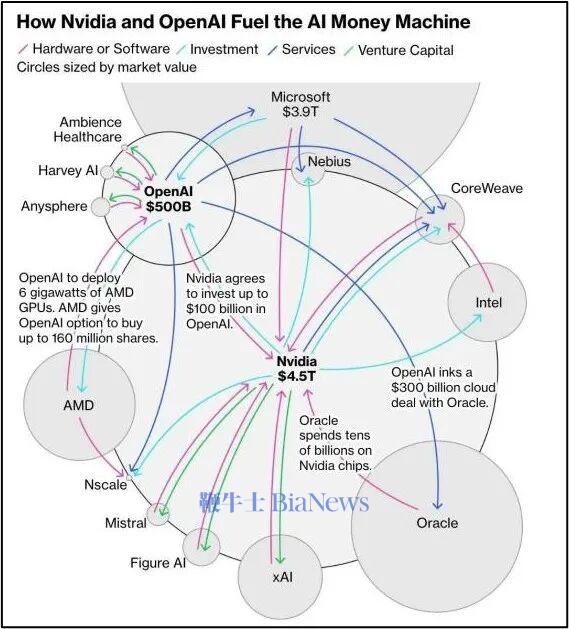 值得注意的是,OpenAI与英伟达、AMD之间的交易,本质上是一种“资金自循环”:用英伟达的投资,购买英伟达的GPU。