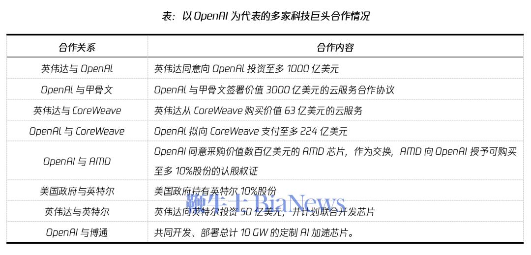 以9月22日与英伟达的合作为例:双方将共建至少10吉瓦的AI数据中心,配备数百万块英伟达GPU。为支持此计划,创始人黄仁勋拟向OpenAI投资最多1000亿美元;作为回报,OpenAI将以现金采购英伟达芯片,而黄仁勋则获得OpenAI的非控股股份。