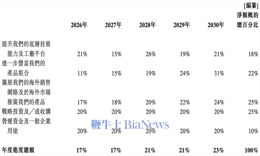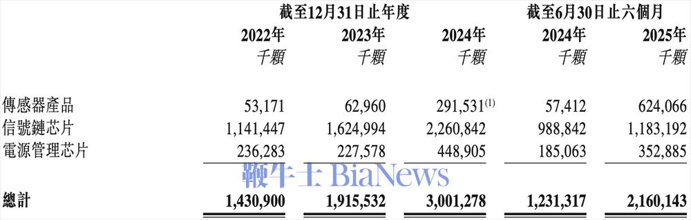 截至2025年6月30日,纳芯微在三大类产品合计已推出3600余款可供销售的产品型号。在泛能源领域,纳芯微的传感器产品、信号链芯片、电源管理芯片广泛应用于逆变器、变流器、移动储能、充电桩、伺服控制器、电机驱动、服务器电源等设备中,在能源转换、储能管理和工业控制等方面发挥了重要作用。2025年1-6月,纳芯微在泛能源领域的销量达到约7.45亿颗。自2022年至2024年,其在泛能源领域销量的复合年增长率达到12.9%。在汽车电子领域,截至2025年6月30日,纳芯微已提供超过800款汽车电子产品型号。2025年1-6月,纳芯微在汽车电子领域的销量达到约3.13亿颗,来自汽车电子领域收入占总收入的约34.0%。自2022年至2024年,该公司来自汽车电子领域收入的复合年增长率达到36.4%。在消费电子领域,纳芯微的传感器、信号链芯片、电源管理芯片被广泛用于手机、家电、便携式电子产品和其他消费电子产品中,提供高效、可靠的性能支持。此外,该公司也在积极布局新兴应用场景。例如其传感器产品、马达驱动芯片、实时控制芯片及供电电源芯片等产品可用于实现精准感知、运动控制和高效电力传输等功能,这些功能可用于人形机器人等新兴应用领域。截至2025年6月30日,纳芯微的员工总数为1228人,其中研发人员588人,占比47.9%。计划优先研发高精度传感器,持续推出车规级产品,布局人形机器人产品