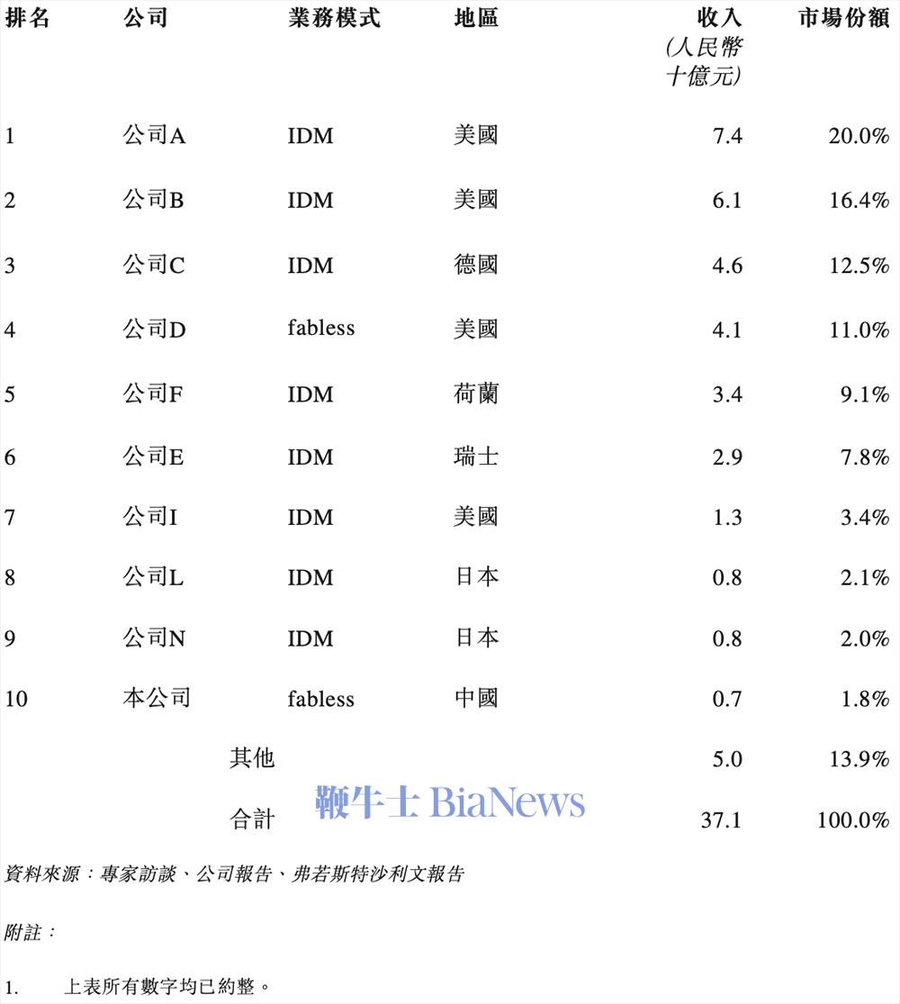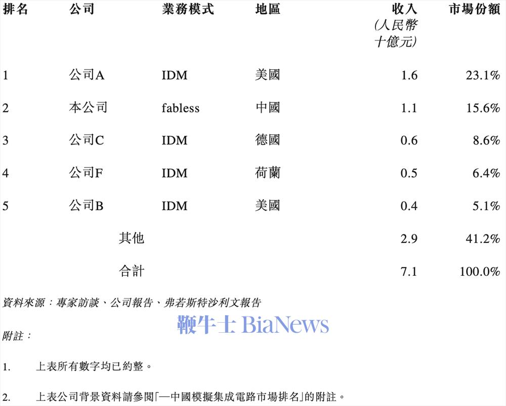 2024年中国模拟芯片市场规模达到1953亿元,纳芯微在中国模拟芯片市场排名第14位,在所有fabless公司中排名第6位,在中国公司中排名第5位。2024年中国数字隔离芯片市场规模达到71亿元,纳芯微在中国数字隔离芯片市场排名第2名,在所有fabless公司中排名第1名,在中国公司中排名第1名。根据弗若斯特沙利文的资料,纳芯微是国内首批进入汽车电子领域并实现大规模量产出货的模拟芯片厂商之一,并在汽车电子产品型号数量方面国内领先。2024年中国汽车模拟芯片市场规模达到371亿元,纳芯微在中国汽车模拟芯片市场排名第10位,在所有fabless公司中排名第2位,在中国公司中排名第1位。2024年,中国芯片级磁传感器市场规模达71亿元。纳芯微在中国磁传感器市场排名第五,在中国公司中排名第一。