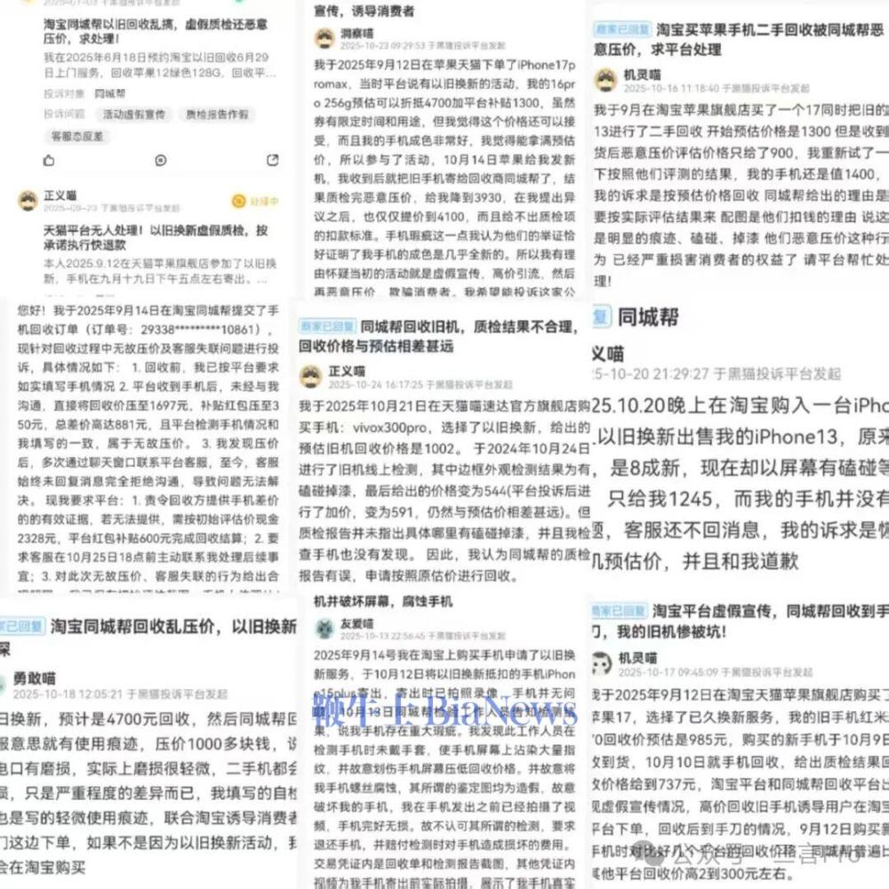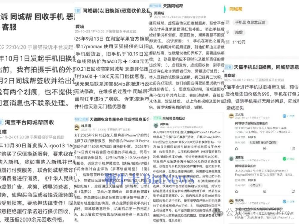 很多网友吐槽称,在电商平台上使用同城帮的以旧换新服务,然后均遭到恶意压价。