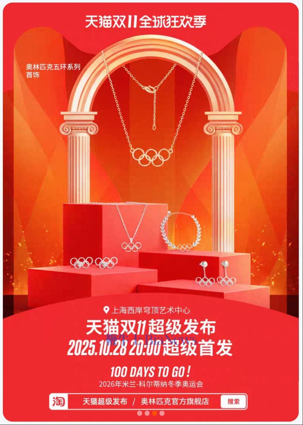 一、超级发布:一场瞄准“双十一”的奥运“预售” 对体育迷而言,赛事周边不仅是纪念品,更是连接每一场体育盛事的情感载体。然而在过去,奥运特许商品仅限在举办城市现场购买,这种地域限制让全球大多数体育爱好者难以便捷地收藏属于自己的奥运记忆。 这一局面在2018年被彻底打破。那年,国际奥委会以官方名义入驻天猫,开设全球首家奥林匹克官方旗舰店,真正实现了“无时差、无季节、无周期”的全线商品在线发售。 图源:网络 从经典的会徽、明信片、马克杯,到融合时尚元素的丝巾、饰品,产品矩阵不断丰富,让奥运记忆跨越地域界限,走进千家万户的日常生活。 在北京2022年冬奥会期间,天猫奥林匹克官方旗舰店迎来重要突破。倒计时100天之际,通过一场线上直播,旗舰店售出大量特许商品,单场观看量超2000万人次,创下销售纪录。 同时,旗舰店依托全国1700多个区县、近万家天猫优品门店,将“云店”延伸至线下,同步首发北京冬奥组委推出的50余款新品,使各地消费者都能便捷购买。 图源:网络 临近开幕倒计时10天,旗舰店上线“云上超级商店”,以沉浸式展示技术提升线上购物体验,推动特许商品销售再创新高。从北京2022年冬奥会开幕到冬残奥闭幕,在“冰墩墩”的热潮下,店铺更是创造了奥运史上特许商品销售记录的巅峰。 至巴黎2024年奥运会,该旗舰店已成为专业的奥运商品首发平台。倒计时100天时,旗舰店独家推出吉祥物“弗里热”系列新品,包括38厘米毛绒玩具、埃菲尔铁塔造型摆件及多款运动主题纪念银币,上市即引发收藏热潮。 图源:网络 七年来,该旗舰店已积累数百万忠实粉丝,累计接待数亿访客,构建起持续活跃的奥运消费生态。 基于这一扎实的运营基础与深厚的用户积累,阿里巴巴选择在米兰冬奥会倒计时100天的关键节点,于2025年10月28日,在上海西岸·穹顶艺术中心正式举办“天猫双11超级发布之米兰冬奥超级发布”活动,点燃了国内米兰冬奥会营销的火种。这次发布会有三大看点: 权威背书,彰显高度:国际奥委会电视与营销服务董事总经理Anne-Sophie Voumard通过视频致辞传递祝福,特许业务负责人Betty Aldini与国家体育总局体育器材与装备中心主任、中国奥委会市场开发部主任于建勇共同亲临现场并致辞,体现了双方对此次发布的深度重视与战略协同。 国际奥委会电视与营销服务部特许及电商业务负责人Betty Aldini 国家体育总局体育器材与装备中心主任、中国奥委会市场开发部主任于建勇 明星破圈,激活广度:冬奥冠军王濛与奥运冠军吴敏霞同台亮相,分别发布了米兰冬奥吉祥物系列与奥林匹克首饰系列的特许商品。中国奥运史上,王濛与吴敏霞分别是夺得金牌最多的冬奥运动员之一和夏奥运动员之一,她们在社交媒体上拥有强大影响力,为此次发布带来了更广泛的关注。 体验深化,传递温度:米兰冬奥和冬残奥吉祥物Tina和Milo完成中国首秀,与粉丝亲切互动;同期于10月25日至28日在上海西岸梦中心设立的“米兰冬奥-冰雪奇境”主题快闪展,则为观众提供了沉浸式体验空间——粉丝可打卡拍照、近距离接触首发新品,亦有机会赢取限量周边。 这场瞄准“双十一”的奥运周边“预售”,通过线上旗舰店与线下体验展,不仅让奥运记忆触手可及,更以创新形式将体育热情与购物狂欢深度融合,成为连接奥运文化与大众生活的新纽带。 二、阿里的底气:八年奥运合作积淀的体系化能力 作为全球最具影响力的体育盛事,奥运会始终蕴含着超越竞技本身的巨大价值。对品牌而言,若能善用这一平台,不仅能有效提升关注度,更能收获事半功倍的商业成效。 阿里巴巴把握住了这一契机,通过八年深耕,构建起独具特色的奥运合作模式。从“冰墩墩”引发的全民热潮,到此次米兰冬奥的营销规划,其背后始终贯穿着系统化的运营思路。 本次“米兰冬奥×天猫双十一”双IP联动,也是这一思路的集中展现。通过将奥运IP与国民级购物节深度结合,阿里借助“双十一”的庞大流量为冬奥商品引流,形成优势互补的协同效应。在具体执行上,阿里围绕三个关键环节构建了完整的营销体系: 产品端:天猫奥林匹克官方旗舰店作为中国区唯一官方线上渠道,独家首发涵盖毛绒玩具、挂件、手办等在内的十余款吉祥物商品。更具突破性的是,国际奥委会首次推出奥林匹克首饰系列(项链、耳环、手链等),并选择通过天猫平台在中国市场独家发售,既是对中国市场的信心,也是对天猫平台的信任。 图源:奥林匹克官方旗舰店 传播端:整场活动通过“天猫超级品牌福利社”直播间全程直播,并联动“交个朋友直播间”等内容渠道持续造势。以10月29日为例,淘宝直播平台邀请米兰冬奥和冬残奥吉祥物Tina和Milo进入直播间互动,独家首发2026年米兰冬奥会创意沙漏,同时结合抽奖赠送官方特许商品,实现了从内容关注到消费转化的完整链条。 用户端:淘宝会员中心同步上线米兰冬奥专属活动,为88VIP会员提供限定虚拟皮肤与王濛签名限量礼盒等专属权益,有效提升了核心用户的忠诚度与长期价值。 这套组合策略的顺利推进,既得益于阿里作为奥运官方电商合作伙伴的独特身份,也离不开其成熟的资源整合与运营实力。 而支撑这一切的,是阿里巴巴自2017年成为国际奥委会全球合作伙伴以来,持续以“云服务+电商”双引擎推动奥运数字化转型的长期投入: 2018年平昌冬奥会,推出首个