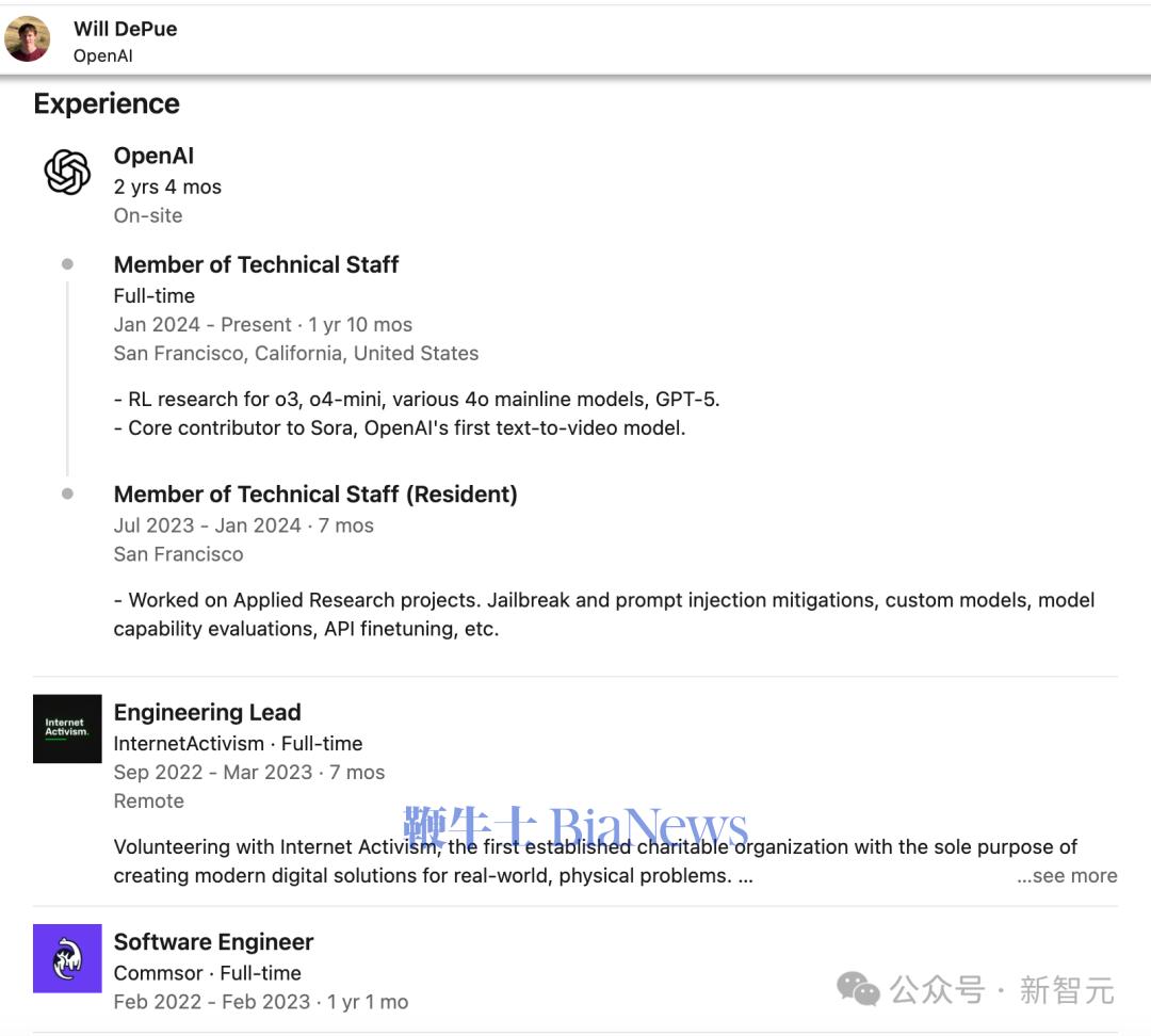 在OpenAI,Will Depue参与都是最核心的项目:o3/4o的后训练,sora 1 & 2的研发以及应用研究。