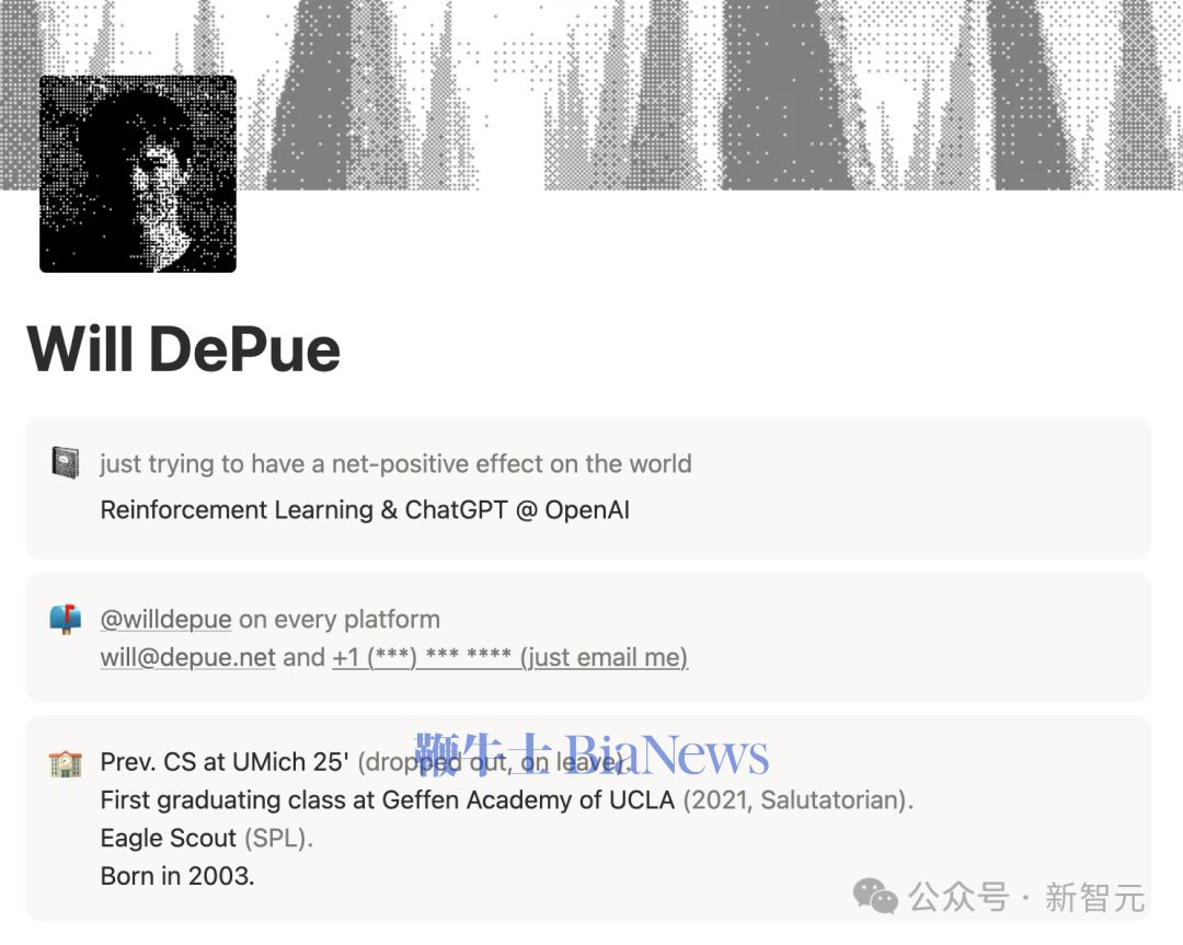 在他的个人主页上,Will DePue说他想给这个世界「产生净正面影响」。