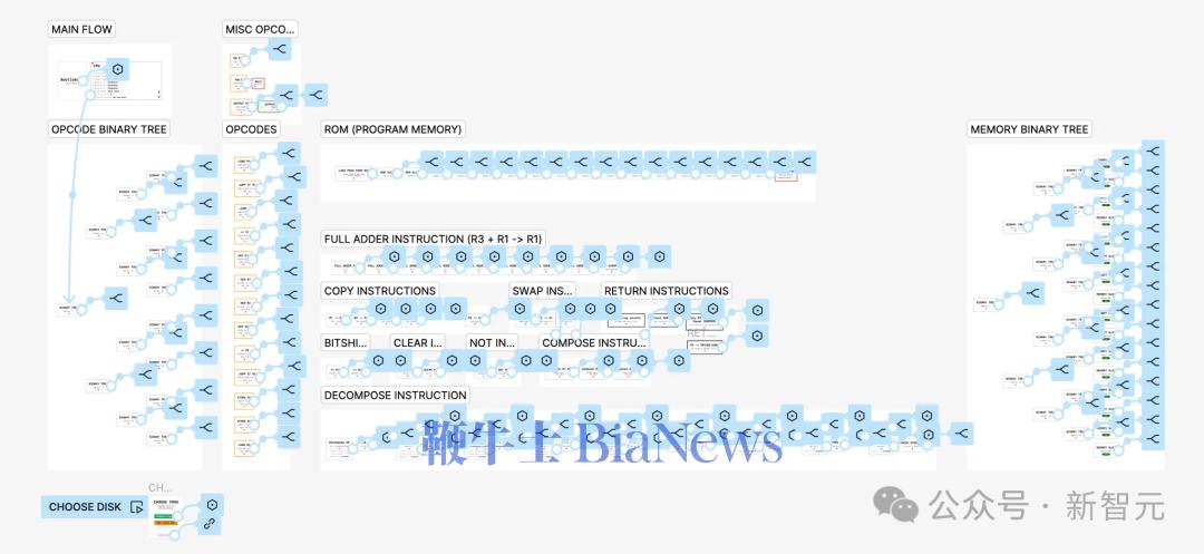 首台完全在Figma中构建的图灵完备机,8位架构,512位RAM,16字节程序内存,包含16条操作码的MISC指令集,10赫兹的时钟速度,4个快速访问寄存器,二叉树结构的RAM/ROM存储。