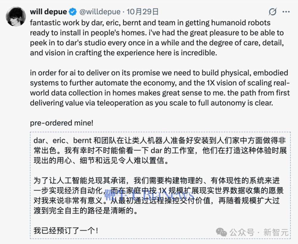 Will DePue也转发Neo的帖子,并声称已经订购。
