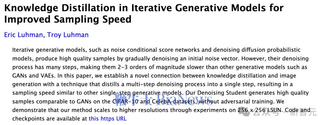 比如下面这篇研究如何将「多步扩散/去噪」生成模型通过知识蒸馏(knowledge distillation)转换为一步或更少步数的采样模型,从而大幅提升生成速度。