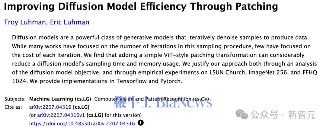 下面这篇提出将「ViT-style patching」(即将图像分块为patches)技术应用于扩散模型,以减少每个采样步骤的计算量/内存消耗。