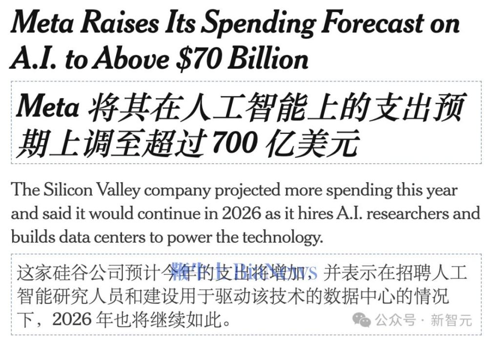 2025年Meta在AI方面的相关支出超过700亿美元,年底这个数字可能增加到720亿美元,2026年这一数字将超过1000亿美元。