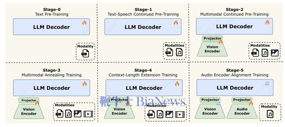 渐进式训练策略:分阶段融合文本、语音、图像、视频数据,确保全模态性能无单模态退化。
