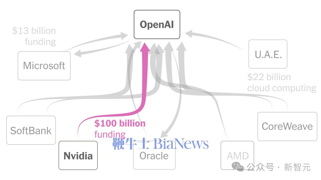 甲骨文、英伟达、亚马逊、微软、AMD、CoreWeave、博通等大厂,皆与OpenAI深度绑定,牵一发而动全身。