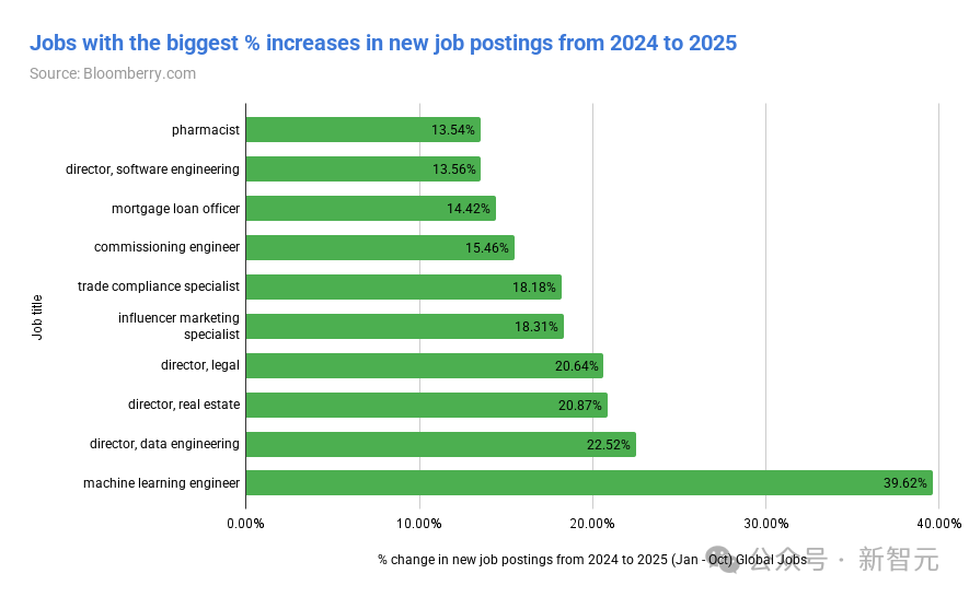 从2024年到2025年,机器学习工程师的招聘岗位飙升了40%,是所有岗位中增幅最大的。