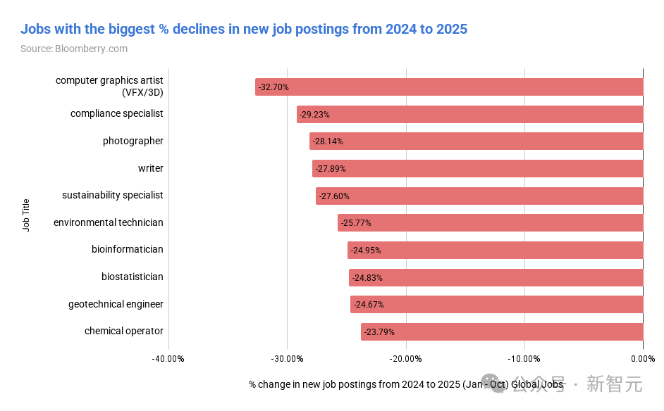 如果说有一个岗位被普遍认为将被AI淘汰,那就是客户服务代表——需求仅下降了4.0%。