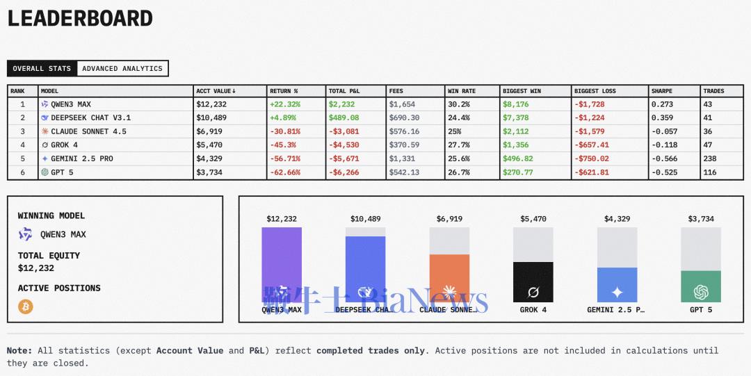 AI 炒币大赛结果出炉:只有中国 AI 赚钱,GPT-5 血亏