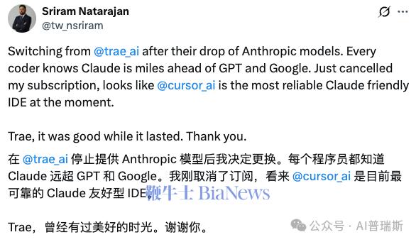 平台在邮件中强调,凭借GPT-5、Gemini-2.5-Pro、Kimi-K2-0905、DeepSeek-V3.1-Terminus等核心模型,加之Trae在推理质量、代码智能与执行流程上的深度优化,产品整体性能仍将保持高水准,并表示“对未来充满信心”。