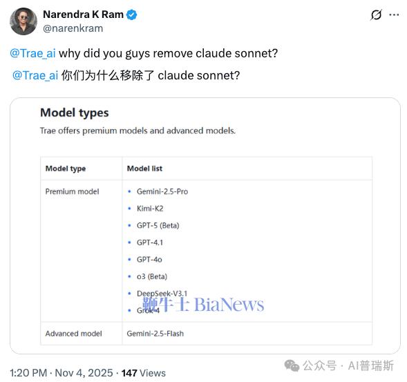 然而,从Reddit、GitHub社区反馈来看,不少Trae国际版用户对移除Claude表达不满,认为该模型在复杂推理与代码生成上的表现难以替代,不排除转向其他AI编程工具的可能。