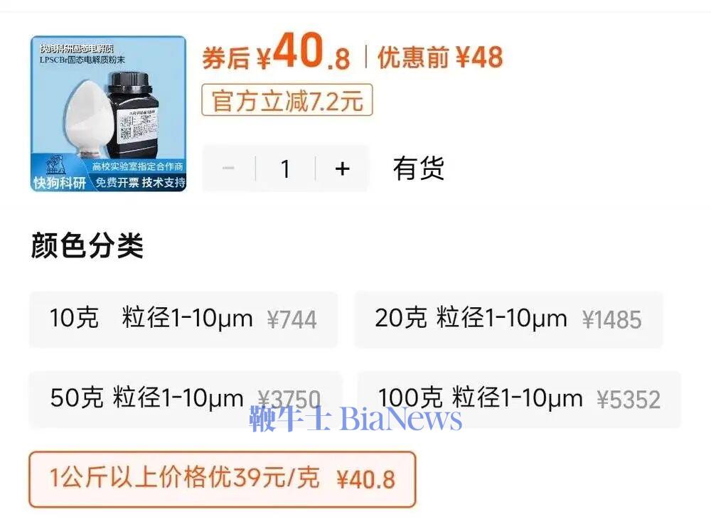 反观固态电池这边,不管是聚合物电解质PEO,还是氧化物电解质LLZO,每公斤的价格都成千上万,硫化物电解质(锂磷硫氯)更是贵到了接近4万元/公斤的价格——我电脑差不多也是一公斤重,整体也才一万多的价格。