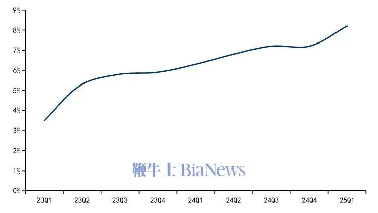 医药品类则更多体现为“渠道效率”的变革。今年第一季度,全国新开药店7118家,闭店10284家,净减少约3000家。但据中康CMH数据,药店O2O渠道占比已从2023年第一季度的3.5%上升至2025年第一季度的8.2%。一些借助即时零售平台的药店,实现销量增长,有媒体报道,辽宁锦州银河广场附近的营盘药房,即时零售月订单量突破1万单。