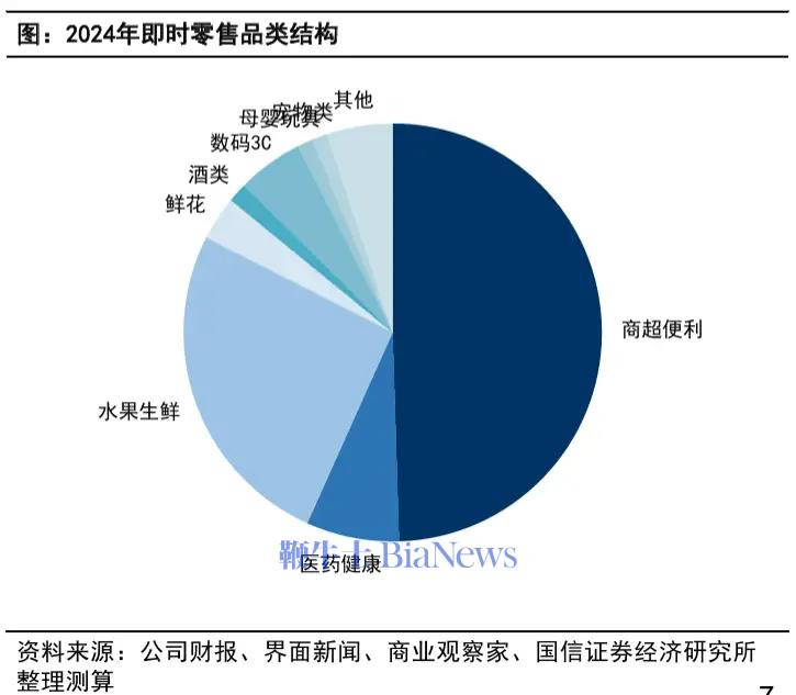 商超便利和水果生鲜是2024年占比最大的两个即时零售品类 图源 / 国信证券