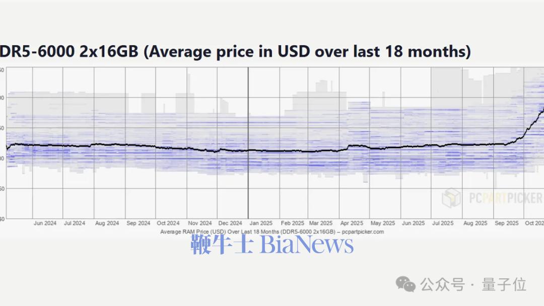 并且从PCPartPicker的跟踪数据来看,内存价格的上涨绝不是个例。