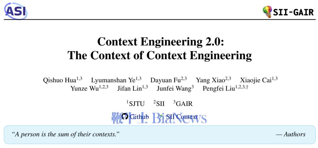 正是在这样的背景下,上交大生成式人工智能实验室(GAIR Lab)提出了一个颠覆性的观点:人工智能的本质不是算力革命,而是“上下文革命”。 他们在最新论文中,把“上下文”从语言模型的附属概念,提升为智能系统的核心结构,认为系统理解世界的方式,取决于它如何吸收、组织并重构语境。