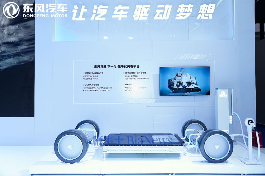 在-30℃ 的极寒环境下,该电池能量保持率仍高达72%以上,远超普通液态三元电池60%的水平;在安全性能上,该电池成功通过了170℃热箱安全试验,远超国标130℃的要求。 东风汽车已建成0.2GWh固态电池中试线并投入使用,预计350Wh/kg固态电池将于2026年9月正式量产上车,届时将助力整车实现1000公里的超长续航。 同时,东风汽车展出了1200V 超高压纯电平台——马赫超千伏纯电平台。该平台采用东风自研的1700V碳化硅功率模块构建全域超高压架构,具备“超级补能、超劲动力、超长续航、超高安全”四大核心优势。