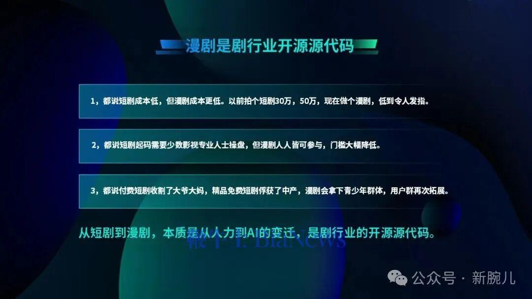 虽然现在有AI的泡沫,但这只是暂时讨论,未来AI会成为国家核心的源代码,对每个人、对企业、漫剧来讲,它是可以驱动一切的工具,目前漫剧就是AI最好的应用。