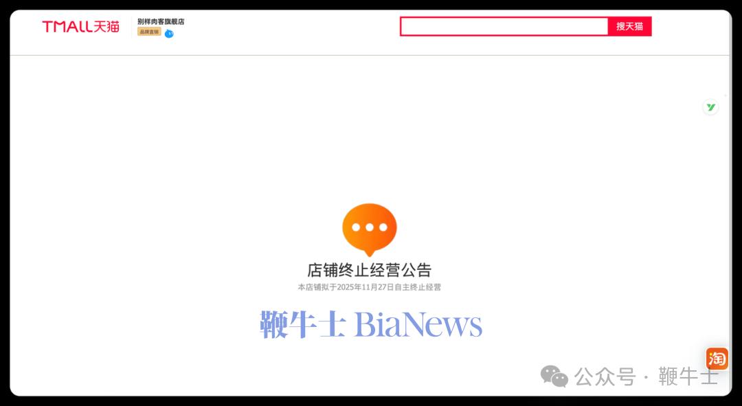近日,美国人造肉品牌“别样肉客(Beyond Meat)”驻天猫官方旗舰店发布公告,宣布于11月27日自主终止经营。