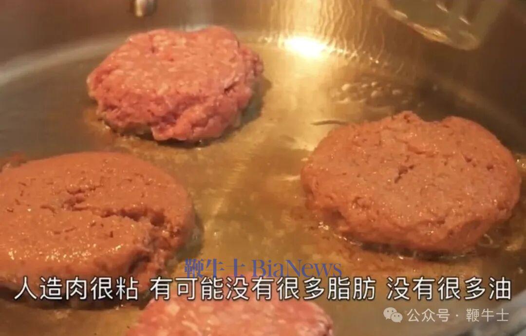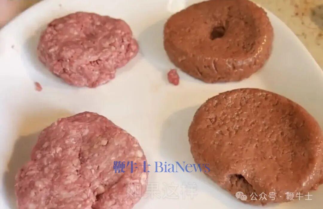 曾有视频博主“我是郭杰瑞”测评过别样肉客的人造肉饼,为了更直观的说明人造肉的特点,博主还拿来了真肉饼与之对比测评。